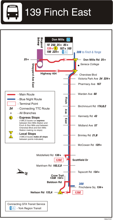 - Depuis la station Don Mills, prendre le bus 139 Finch East jusqu'au chemin Birchmount. Marcher deux coins de rue en direction nord ou changer de bus à Birchmount et prendre le bus 17 Birchmount North. Voir les horaires.